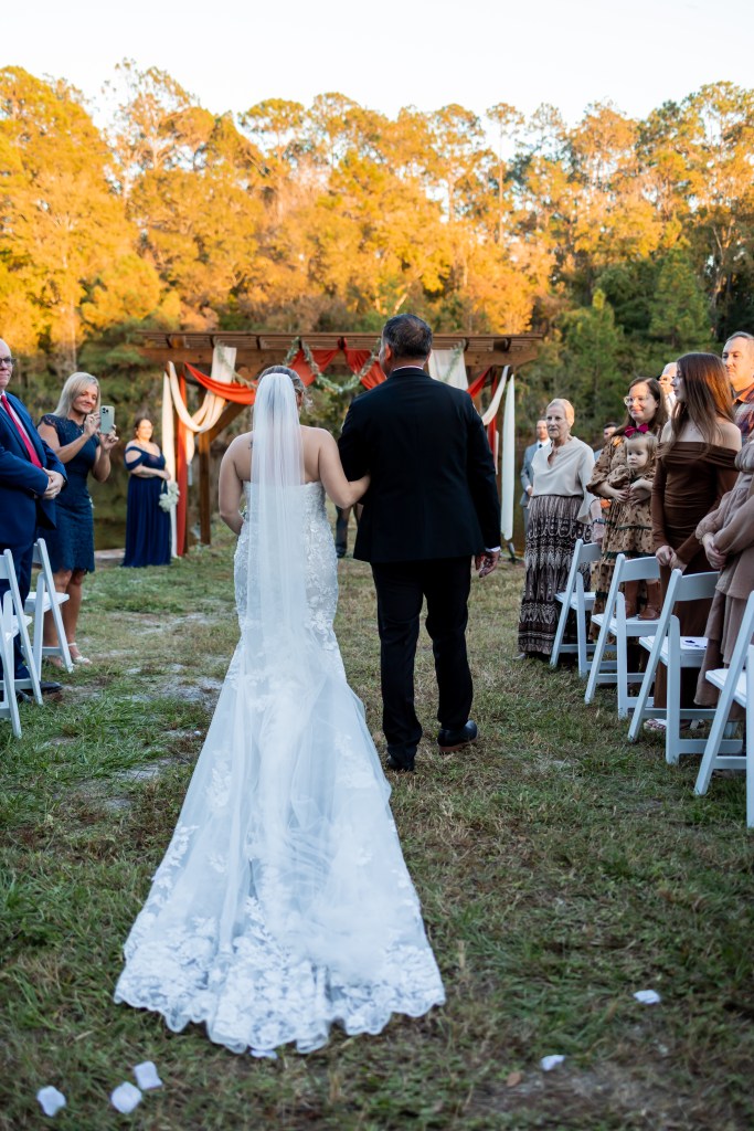 Tucked away in a peaceful rural area outside Jacksonville, this wedding took place in the backyard of close friends — a space that already held years of memories and laughter. Instead of transforming the location into something unrecognizable, the couple embraced the natural charm of the property.