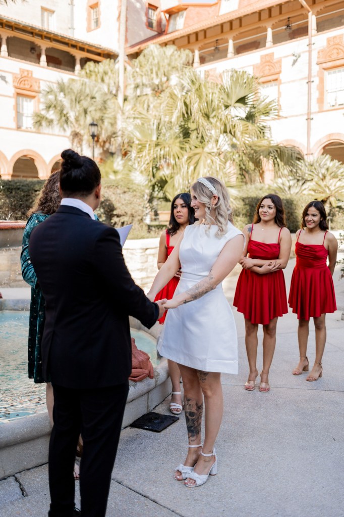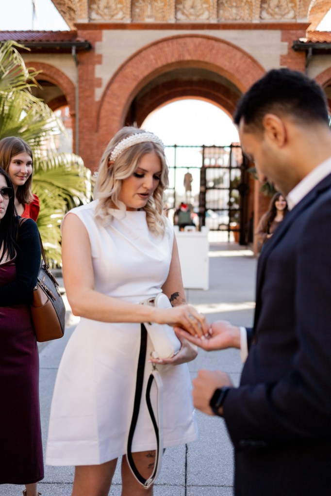 This beautiful St. Augustine elopement took place right in the heart of downtown, surrounded by historic landmarks, warm Florida sunshine, and the couple’s closest family and friends. Instead of planning a traditional large wedding, they chose an intimate elopement experience that allowed them to stay present with each other and enjoy every moment.
